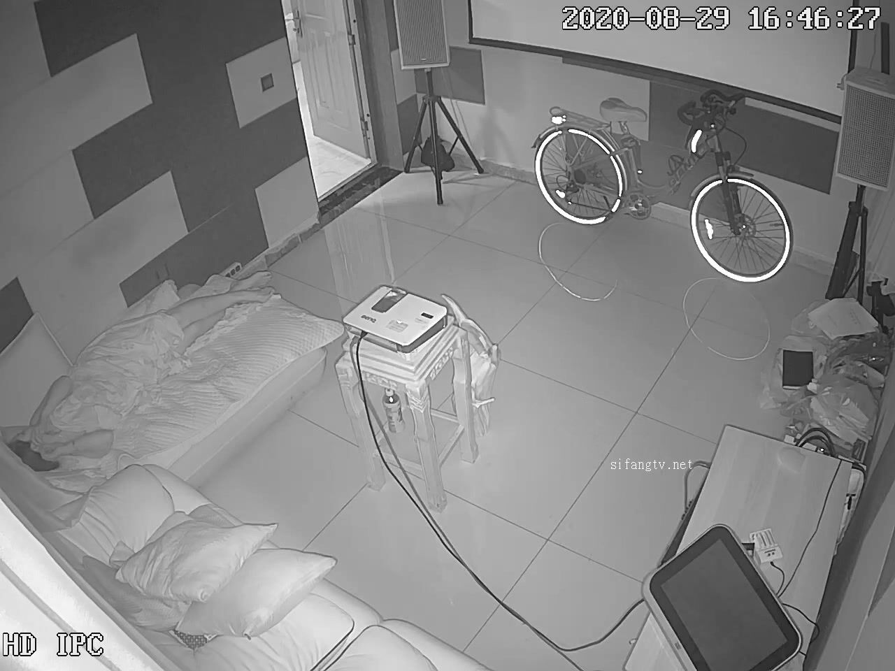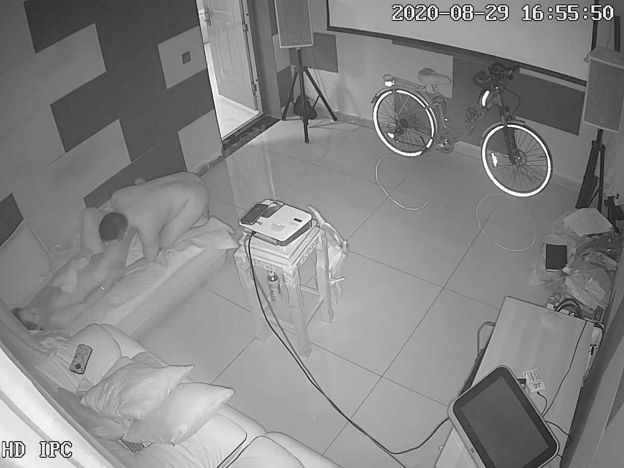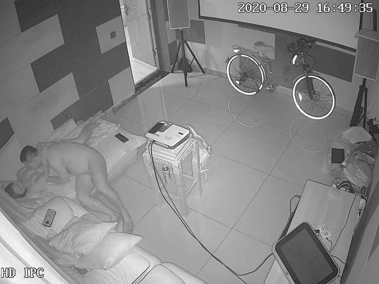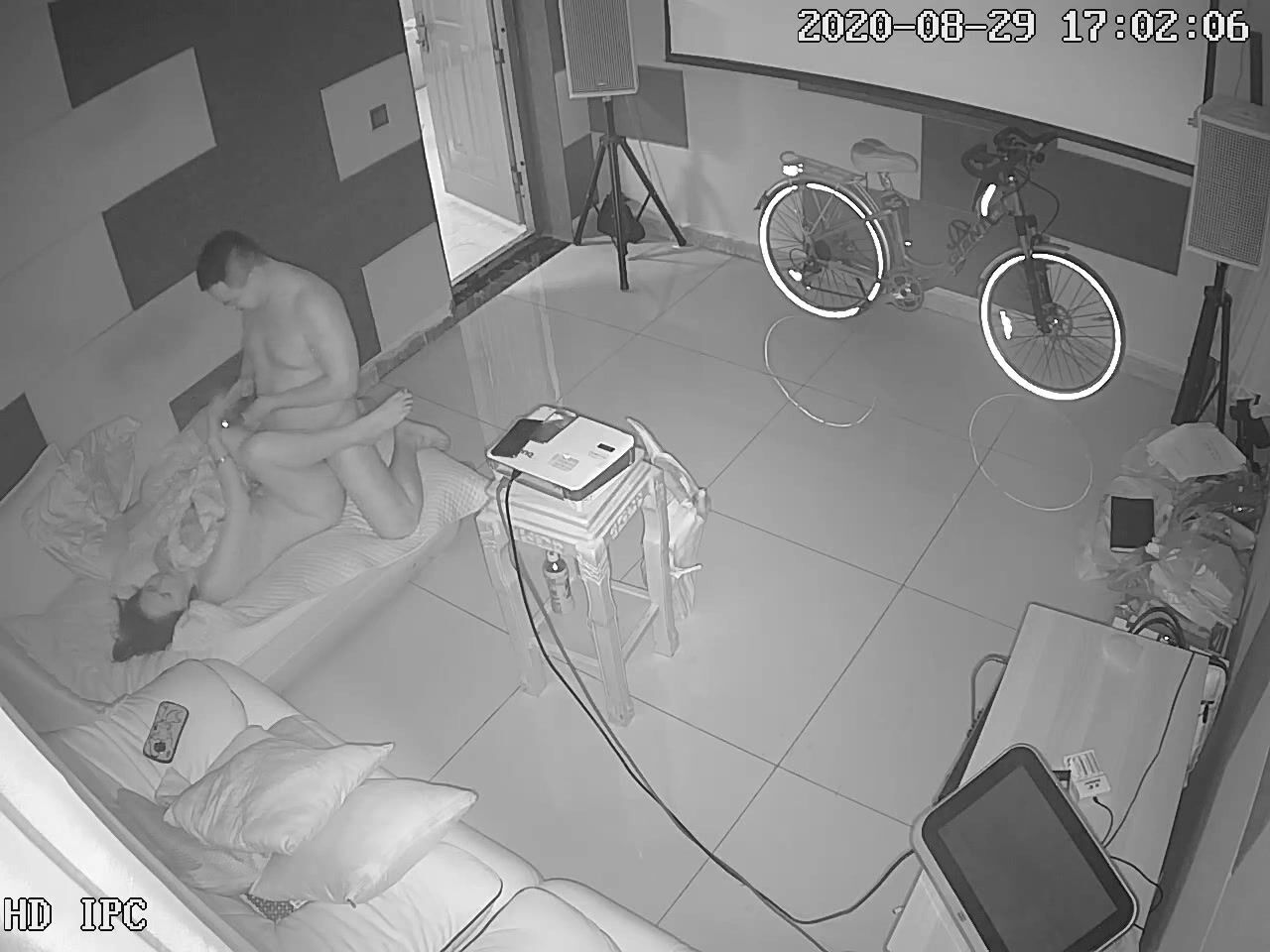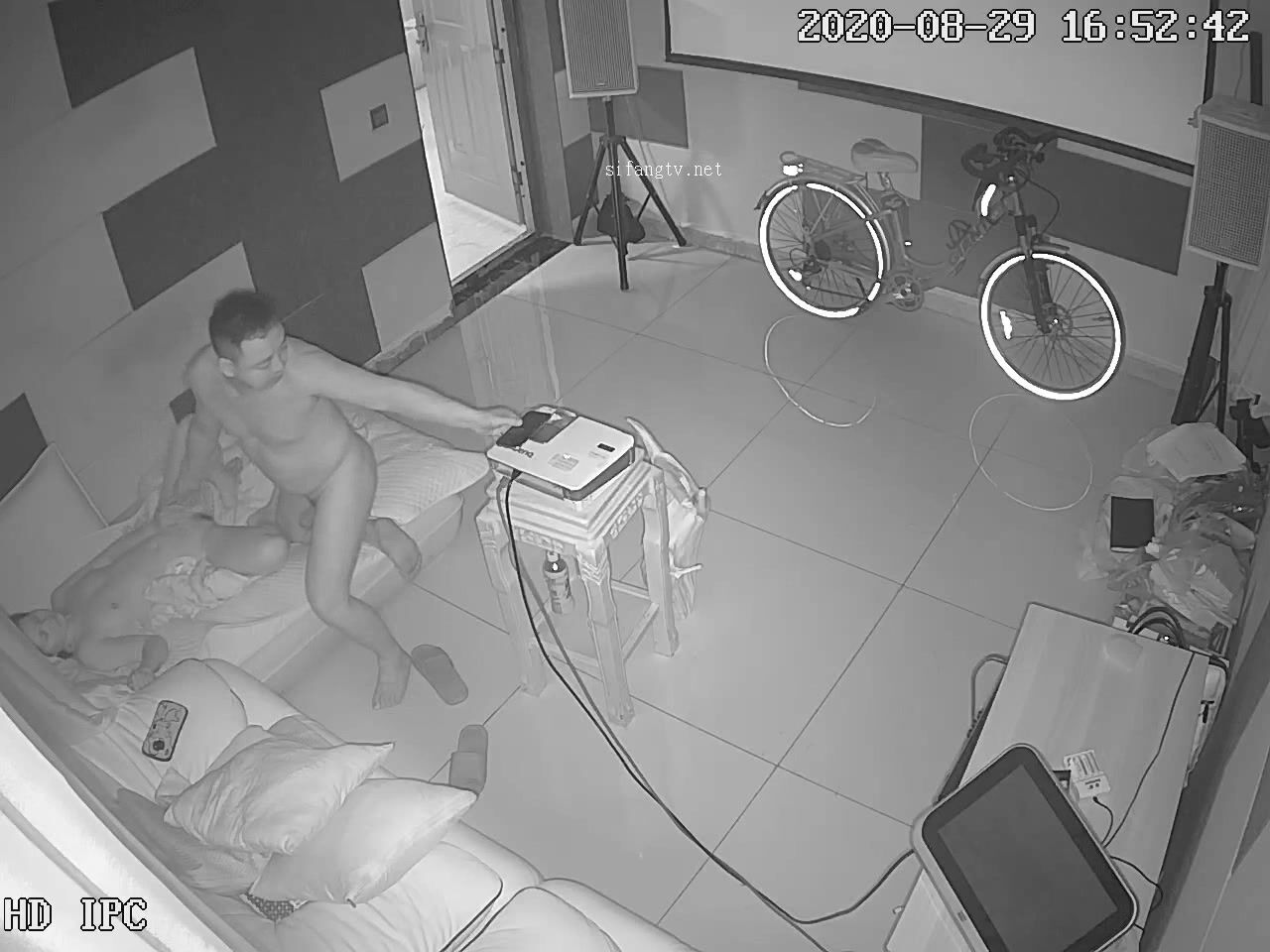黑客破解网络摄像头监控偷拍养生馆理疗体验房间胖哥抱起女理疗师到沙发的贵妃躺上干炮